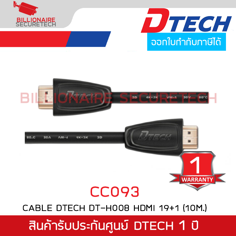 DTECH CC093 สาย HDMI 4K V.2.0 ความยาว 10 เมตร สายสีดำ BY BILLIONAIRE SECURETECH DTECH CC093 10m.
