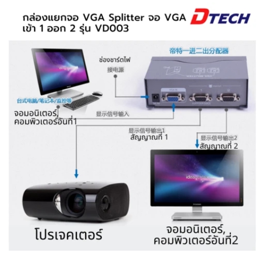 ● กล่องแยกจอ VGA เข้า 1 ออก 2