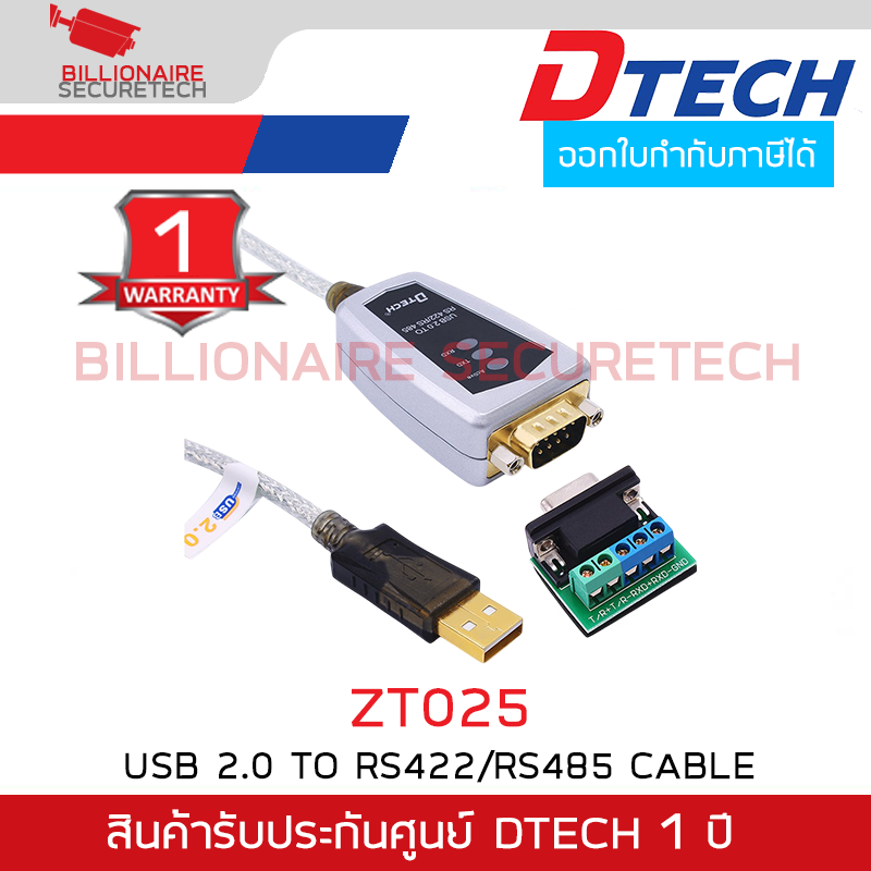 DTECH ZT025 สาย USB to RS422 RS485 Serial Port Converter BY BILLIONAIRE SECURETECH DTECH ZT025 1.2m.