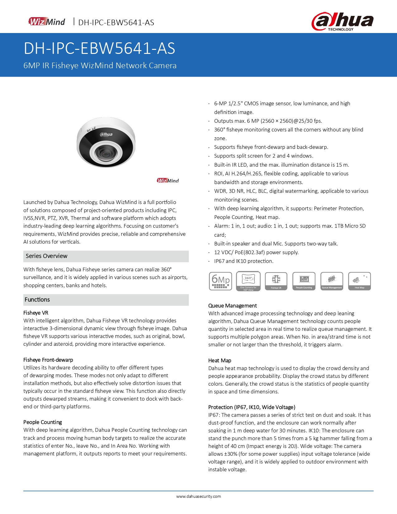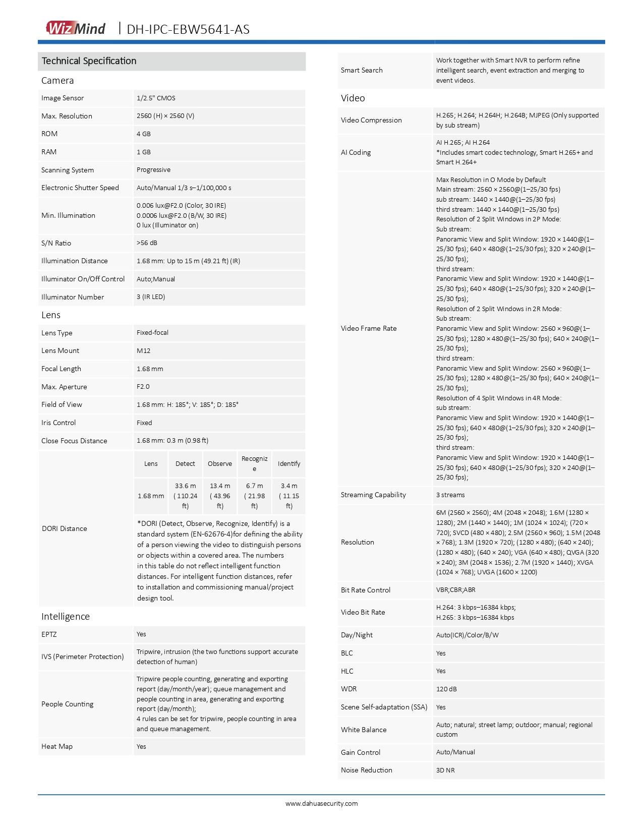 - Outputs max. 6 MP (2560 × 2560)@25/30 fps.